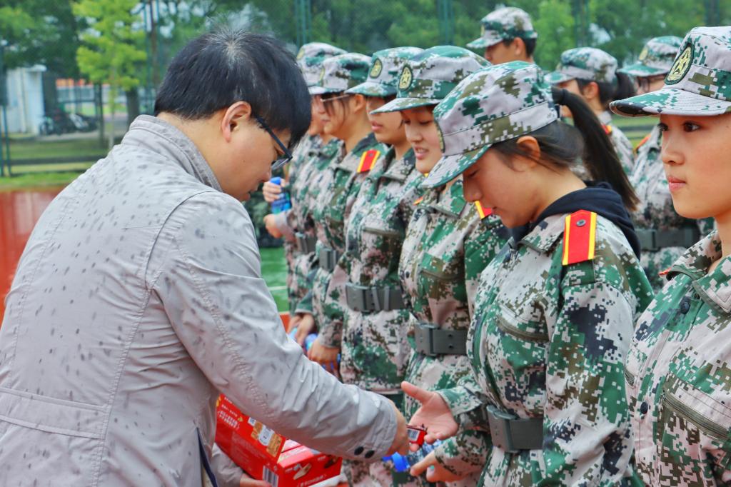 为鼓舞学生军训士气,保证军训优良效果,10月21日上午,437437必赢国际网址党委书记高雪梅、院党委副书记、副院长方俊和校人武部韦红武老师冒雨来到训练场地看望慰问新生,传达学院的关心和问候。