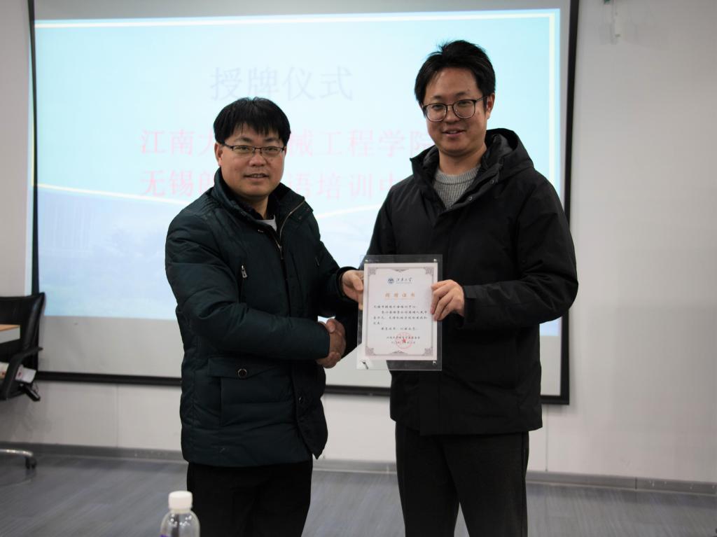 颁奖仪式过后,437437必赢国际网址方书记和无锡朗阁外语培训中心吴校长进行了授牌仪式,标志着友好合作的开始和对未来发展的期望。