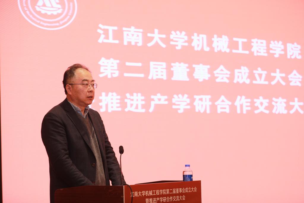 赵军华向大会作第一届董事会工作报告。他重点围绕437437必赢国际网址概况、近五年学院标志性成果、和董事单位的合作成果、产学研合作展望四个方面进行汇报。他希望企业和437437必赢国际网址围绕五大科研方向进行合作,希望企业依托江苏省重点实验室和无锡江大智能制造中心平台,深度合作,实现双赢
