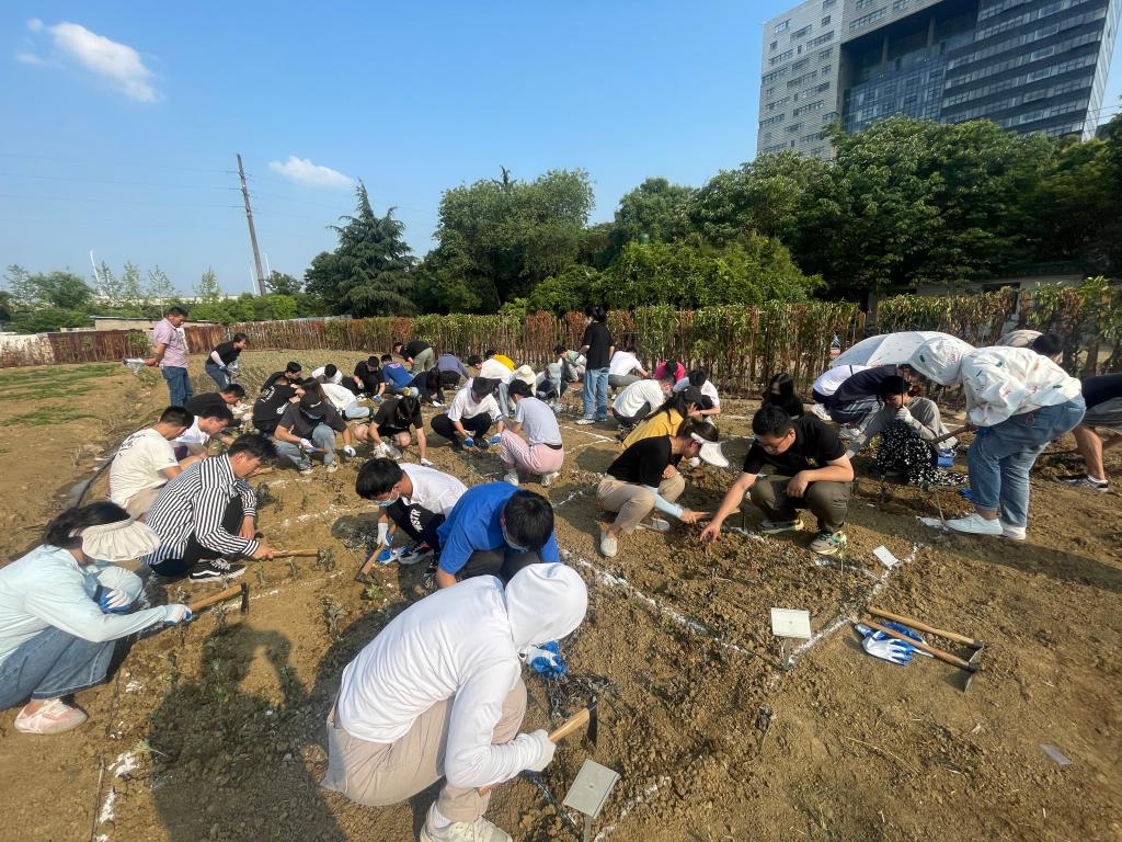 为进一步推进“五育并举”,让劳动教育落到实处,437437必赢国际网址“蓄力未来”教师育人工作室与“铸魂育人”党员教育管理辅导员工作室积极与后勤管理处沟通与联系,在学校“小鼋花园”共建长期劳动教育实践基地。6月14日下午,系列活动之“种植艾草”活动开展。环境中心办公室主任蒋凌羽,环境中心党支部书记吴湘娟,437437必赢国际网址分团委书记孟召双,辅导员孟飞、余骏皓,环境中心党支部教师代表,研究生党员代表,“秦邦宪”特称团支部团员代表共60余人参与本次活动。