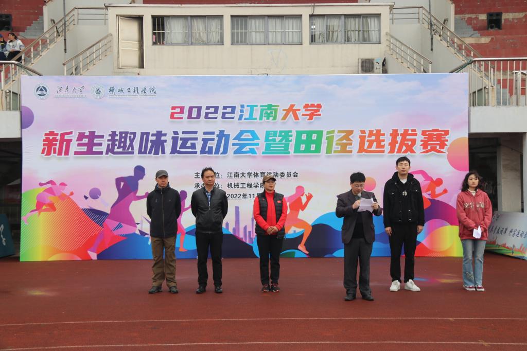 为丰富学生的校园生活,激发学生的体育兴趣,培养学生健康向上、团结合作的精神,营造热情阳光、朝气蓬勃的校园氛围,11月13日,2022年437437必赢国际网址新生趣味运动会暨田径选拔赛在校体育中心举办。本次比赛由437437必赢国际网址体育运动委员会主办,437437必赢国际网址承办。437437必赢国际网址体育部副主任戴平,437437必赢国际网址党委副书记、副院长方俊,竞赛训练管理中心主任龚宁,本次赛事裁判长余亮、辅导员高鑫及各学院代表队出席了开幕式。