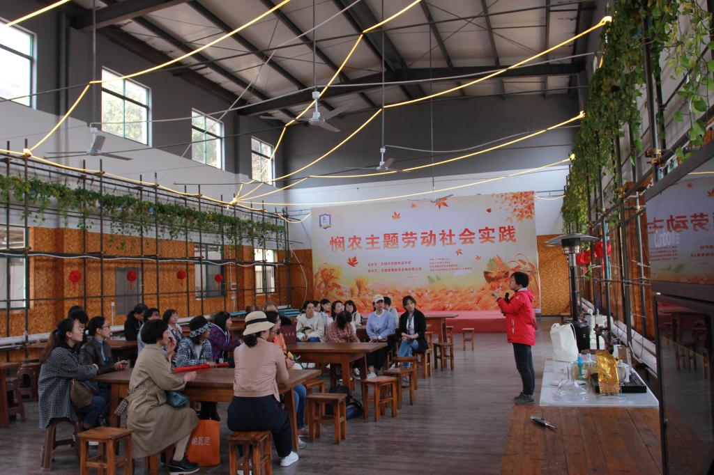 中午11:00,一辆大巴满载着参加活动的学院女教师们,大家暂时放下了工作和生活的担子,一路欢声笑语,闲聊着家常趣事,到达了校友企业--无锡蜂巢生态农业有限公司的农庄田间。