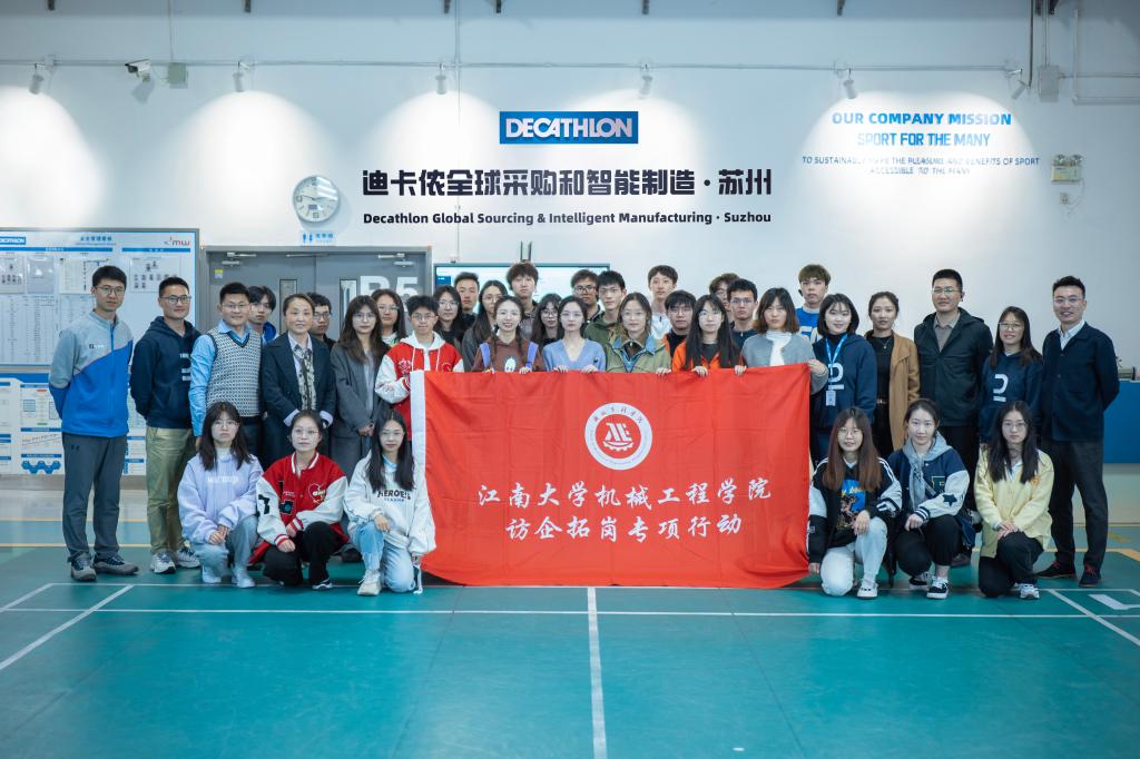 3月29日,437437必赢国际网址党委书记高雪梅携分团委书记孟召双、辅导员冯亚东、萧欣彤等前往苏州迪卡侬公司开展访企拓岗专项行动。学院各专业学生代表30余名一同前往参观交流。