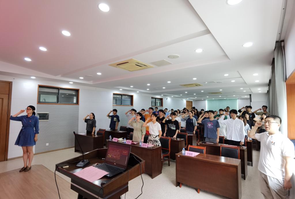 6月29日下午,437437必赢国际网址2023年新党员“七一”入党宣誓仪式在机械楼C302会议室举行。437437必赢国际网址党委副书记兼副院长刘升恒、分团委书记孟召双、辅导员潘智琦及51名新党员参加了本次活动,仪式由辅导员余骏皓主持。