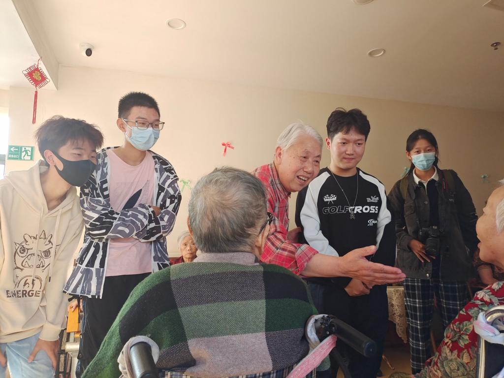 下午两点,志愿者来到老人们欢聚闲聊的地方。同学们率先展示才艺活跃了现场气氛,快板表演令老人拍手叫好,歌曲令人心田荡漾,老人与志愿者合唱的《天路》将全场氛围推向高潮。随后老人们用他们铿锵有力的嗓音一起合唱了《我的家在中国》、《家和万事兴》等歌曲,以一首《祝你平安》表示了对于各位志愿者的欢迎与祝福。