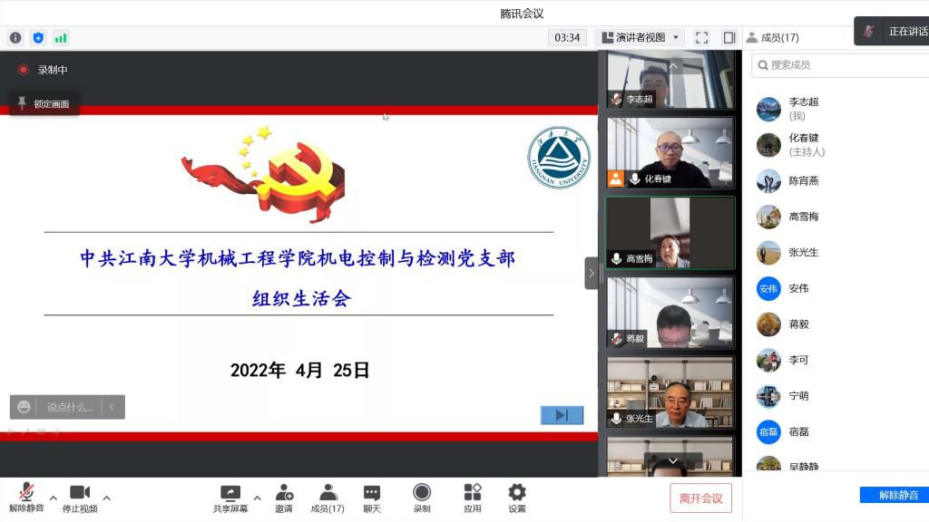 随后,君远学院原院长、机电支部党员张秋菊做了重点发言。她结合相关文件精神的理论学习,结合近期学院抗疫、线上教学、机器人新专业建设,以及学院开展的抗疫期间党员教师联系学生宿舍等具体工作进行了交流,表示坚持抗疫的同时仍需不忘初心坚持发展,要抓住新专业建设的契机,创新培养模式,多培养机器人领域的有用之才。接着,支部成员纷纷交流发言,大家结合自身感悟从理论认知、现实表现等方面进行了交流,认为防疫抗疫工作,要着眼于个人利益与国家利益、眼前利益与长远利益来进行深入思考。列席成员李可交流发言表示,君远学院师生将坚决执行学校疫情防控的相关文件精神与工作要求,做好线上教学和实验安全等具体工作,注重关爱帮扶学生,师生同心共克时艰。