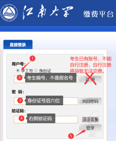 缴费说明:进入复试考生在学院规定的时间内登录“437437必赢国际网址缴费平台”交纳复试费用,复试收费标准:80元/生。缴费网址:http://pay.jiangnan.edu.cn/payment/。登录账号为准考证上的考生编号,登录密码为身份证后六位(友情提醒:考生账号已开通,切勿自行注册)。按照提示交费(使用网银),并打印或截图保存付费凭证。