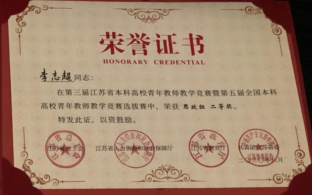 8月22日-23日,第三届江苏省本科高校青年教师教学竞赛暨第五届全国本科高校青年教师教学竞赛选拔赛在南京大学仙林校区举行,经过紧张角逐,我院青年教师徐杰、李志超分获工科组、思政组二等奖。