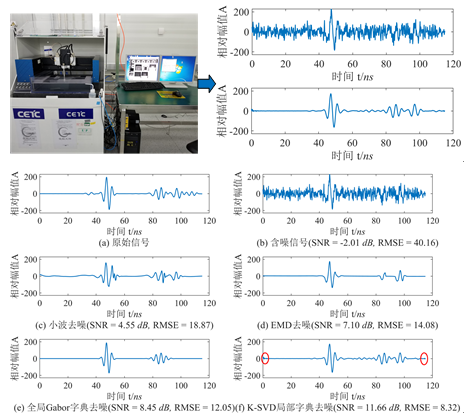 针对A-Scan时域信号受噪声影响的问题,团队提出了一种基于K-SVD训练局部字典的稀疏去噪模型,该模型在训练好的局部字典上对倒装芯片的高频超声回波信号进行稀疏分解,极大提高了回波信号稀疏的分解效率。同时,该项工作可以针对具体型号的芯片来设计字典,能够最大限度地抑制检测信号中的噪声,增强缺陷特征。