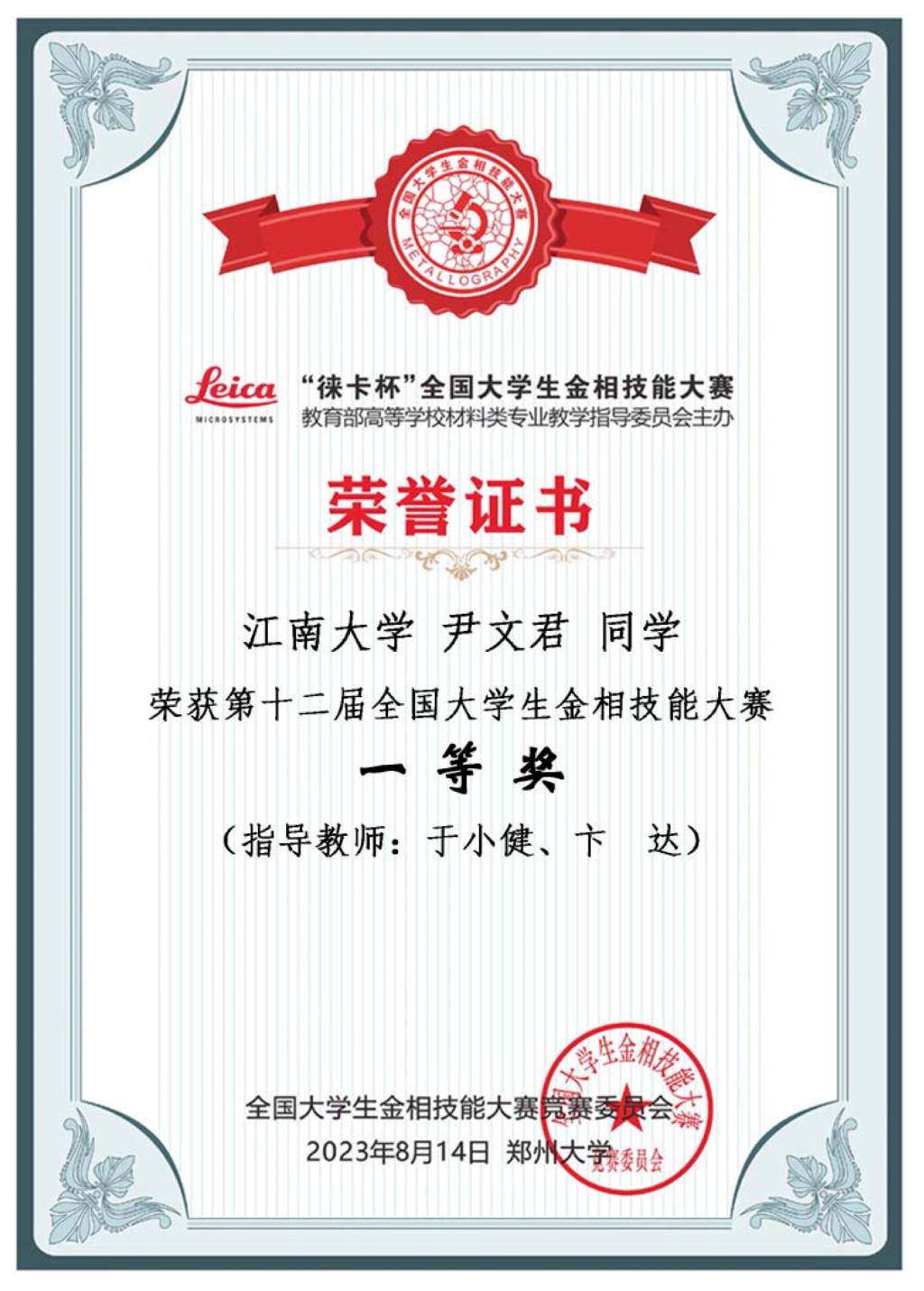 近日,第十二届全国大学生金相技能大赛在郑州大学落下帷幕,机械学子表现优异,斩获国家一等奖1项、二等奖1项、三等奖4项,突破学校历史最好成绩。