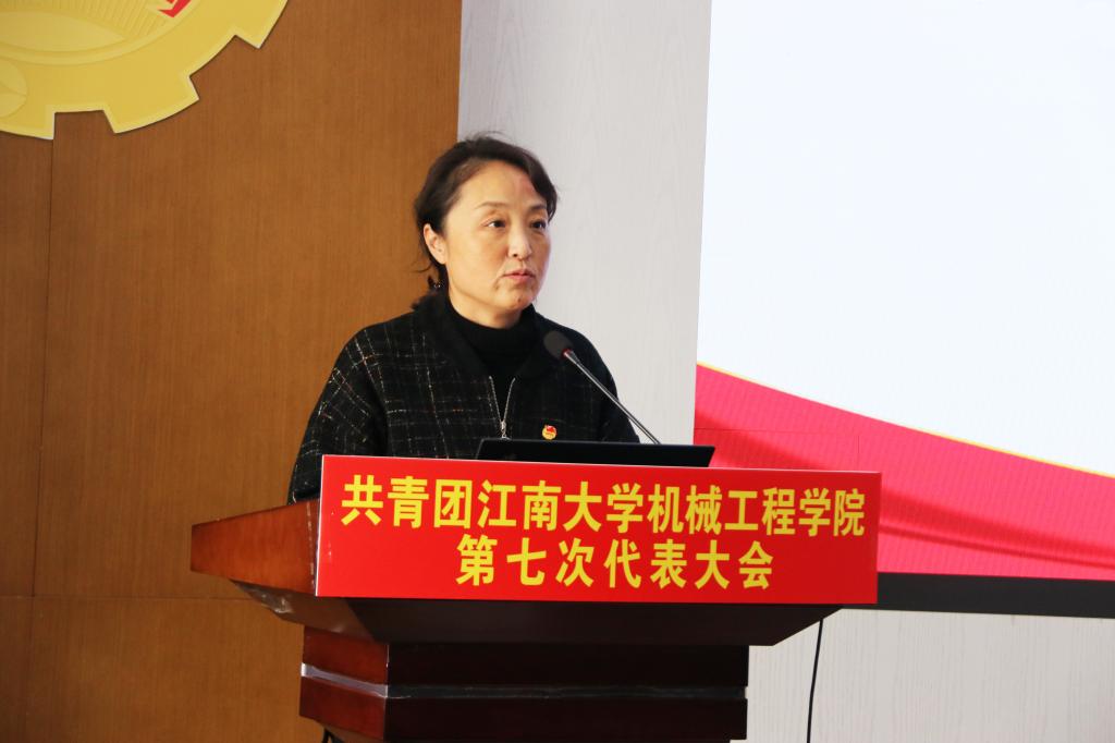高雪梅代表学院党委对此次大会的召开表示热烈的祝贺,并对学院共青团和广大团员青年提出要求,期冀他们要有“任尔东南西北风”的定力、“直挂云帆济沧海”的魄力、“打铁还需自身硬”的自觉,在青春奋进中坚定理想信念、保持昂扬斗志、勇于实干担当。最后,她勉励广大团员青年努力践行“请党放心,强国有我”的青春誓言,在未来的共青团事业中,共同谱写机械学子的奋进新篇章。