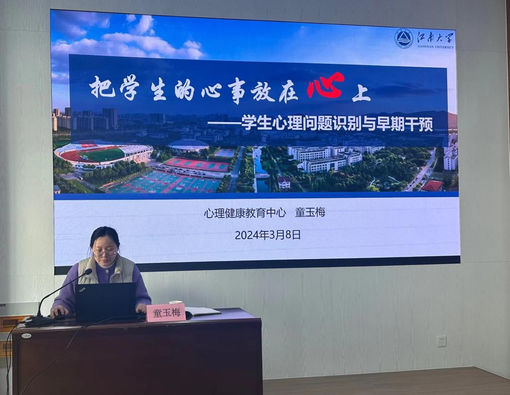随后,童玉梅带来“把学生的心事放在心上——学生心理问题识别与早期干预”专题讲座。她重点从“观察-询问-劝告-转介”四方面详细讲解了需要特别关心关注的学生类型、谈心谈话技巧和话术,以及危机干预中团队协作的重要性,给予了老师们信心和支持。