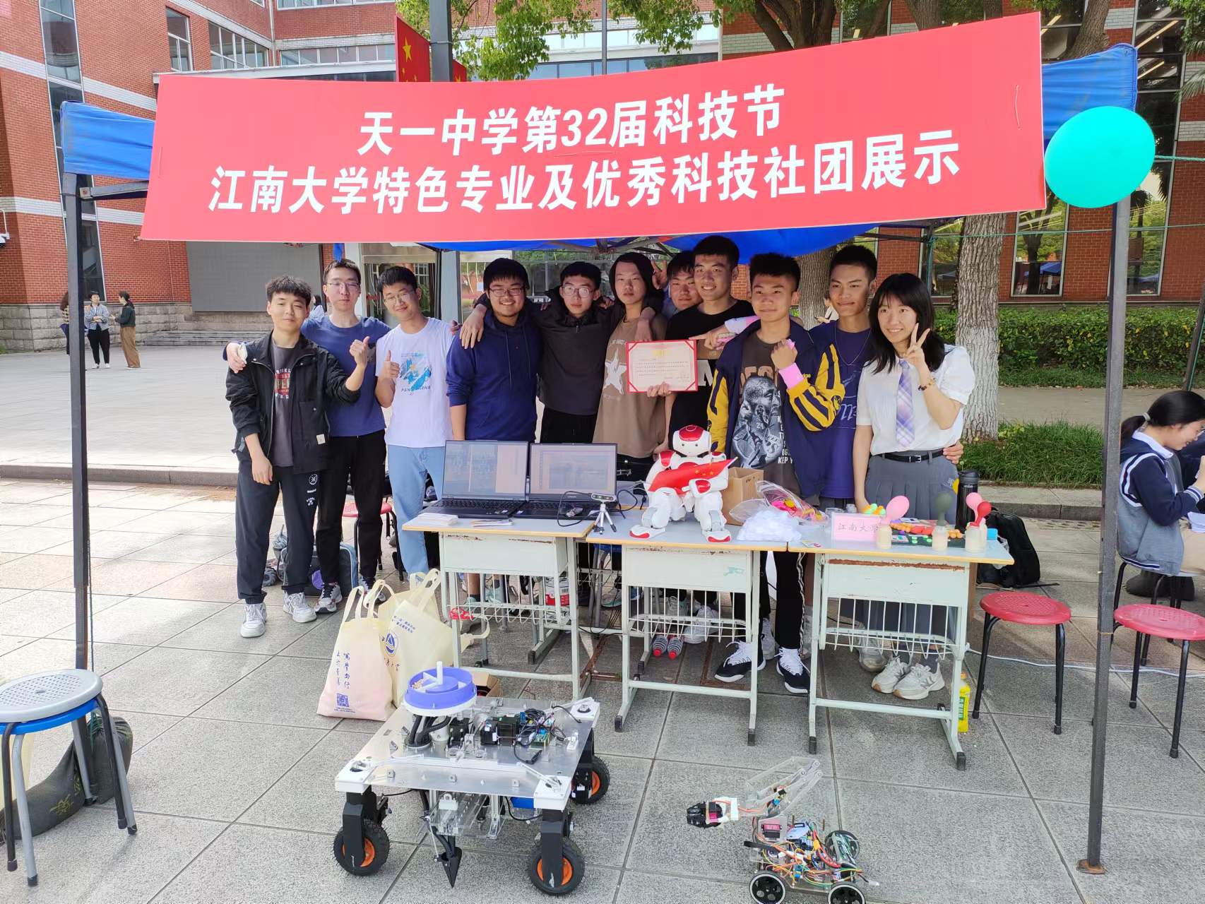 5月12日下午,在江苏省天一中学举办的第32届科技节上,437437必赢国际网址学生受邀参加“高校特色专业及优秀科技社团展示”活动。活动中,荣获第十届江苏省大学生机械设计大赛兴农机械赛道一等奖的作品《“粒粒有数”多功能豆类播种机》、二等奖作品《钳剪式智能辣椒采摘机器人》,君远学院的NAO人形机器人、哨兵小车、自制无人机悉数登场。