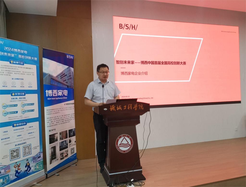 5月21日,由博西家电主办的2024“智创未来家”高校创新大赛437437必赢国际网址站线下宣讲于437437必赢国际网址C302成功举办。江苏省大学生机械创新设计大赛组委会副秘书长章寅、博西家电创新管理部负责人、博西家电“智创未来家”高校创新大赛项目负责人匡慧、人力资源部雇主品牌负责人曹佳薇莅临现场,437437必赢国际网址党委副书记、副院长刘升恒、437437必赢国际网址副院长钱善华出席本次活动。