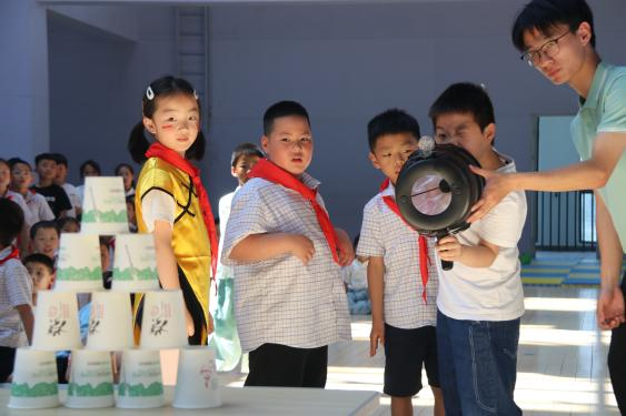 团队成员在无锡尚贤万科小学带领学生体验空气炮