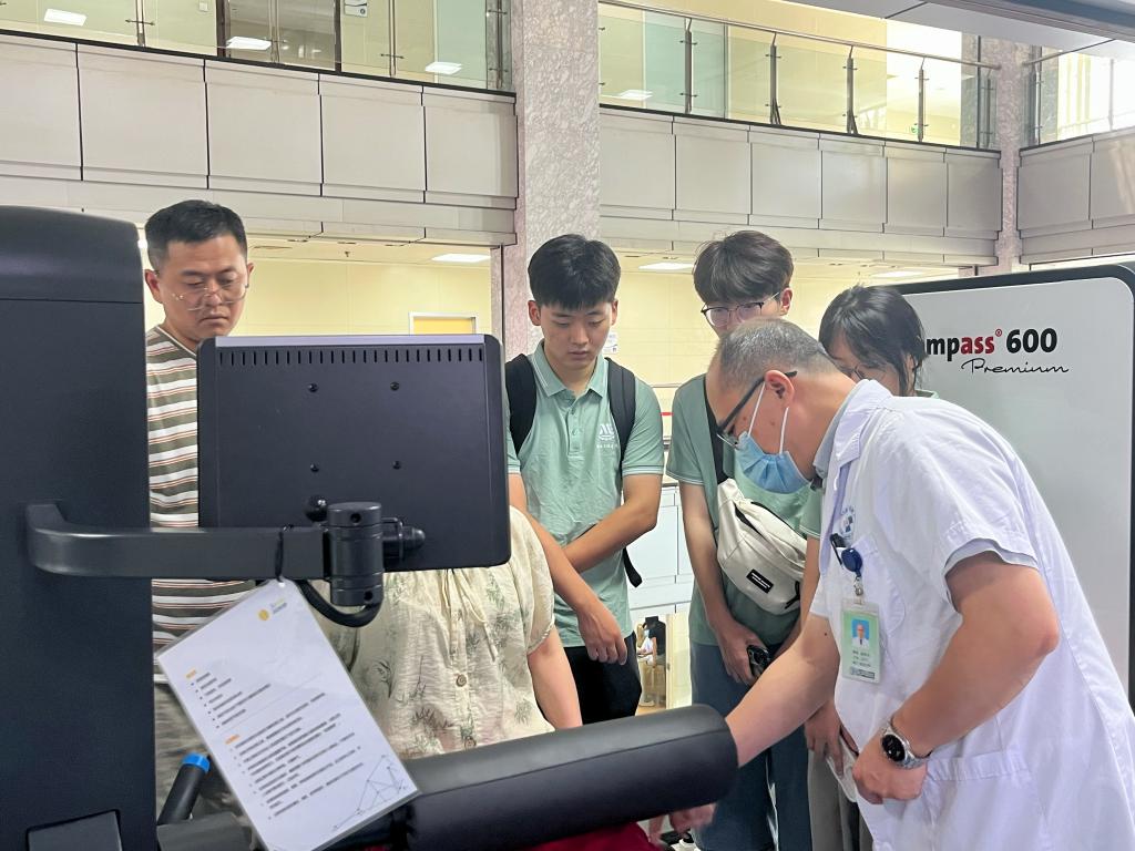 在随后的技术交流中,陆主任首先为实践团成员用简略且形象的方式介绍了上肢运动的原理—“肌肉、筋、神经”三者是如何协同运动,及康复治疗过程中各阶段患者的不同治疗方向,提出机器精密度和自主化提升的需求。接着徐主任提到:“目前康复治疗中与同学们带来的项目相似的上肢康复仪器需要专业从医人员协助操作,自主性较差,需要耗费的人力较大,机械学院学子肩负重任,希望日后能研发出能更好帮助患者康复、减轻医生重担的仪器并投入实际使用。”