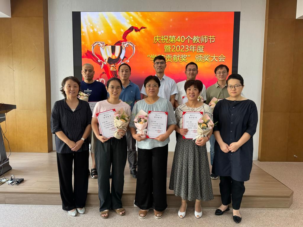 接着进入表彰环节。党委书记高雪梅宣读了学院文件《关于授予“2023年度学院贡献奖”的决定》,对过去一年里在学院人才培养、科学研究、服务社会等工作中作出重要贡献的12名教师代表进行表彰。高雪梅、副书记刘升恒为受到表彰的教师代表颁发了获奖证书并献花致敬。副院长王东祥宣读了学校教师发展中心为本科学生评教前5%的教师发来的感谢信,钱静、王东祥为获奖教师颁发了感谢信并献花致敬。获奖教师代表发表了获奖感言。