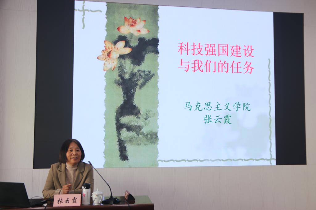 第二讲由马克思主义学院关工委常务副主任张云霞作“科技强国建设与我们的任务”主题党课,她从现代化强国、科技强国目标切入,深度解读相关概念及其内涵,剖析国家科技发展现状,指出问题与差距,梳理现阶段国家、省市地区的建设目标,引导同学们志存高远、脚踏实地,提升个人本领,锚定长远目标,顺历史潮流而为,在与国家、社会同向同行中实现个人价值。